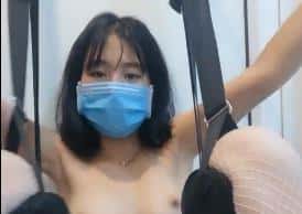 逼逼无毛苗条妹子吊在空中自慰